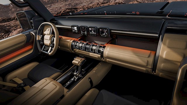 内饰在关键部位使用耐磨损材料并布设多种实体按键与旋钮,确保司乘人员在崎岖不平的路面上颠簸前行时也能进行稳定可靠的操作。